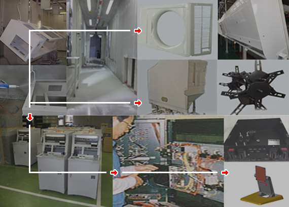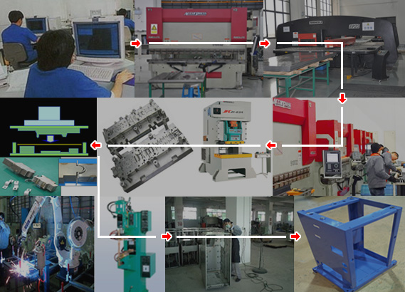开发&设计 → 激光加工 → 转塔数冲 → 折弯 → 模具冲压 → 焊接装配 → 打磨 → 清洗 → 涂装 → 组装 → 检查 → 成品…